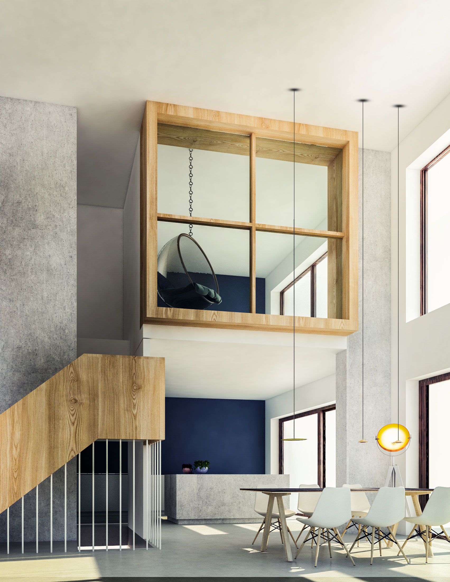 Lofthouse 007 is located in the apartment building that is being built as a CPO in Amsterdam Buiksloterham. The building called Stories Buiksloterham tells many stories of all residents who are allowed to decorate and finish their own house. This loft house 007 with spectacular voids could just be a new location for a new James Bond movie.
